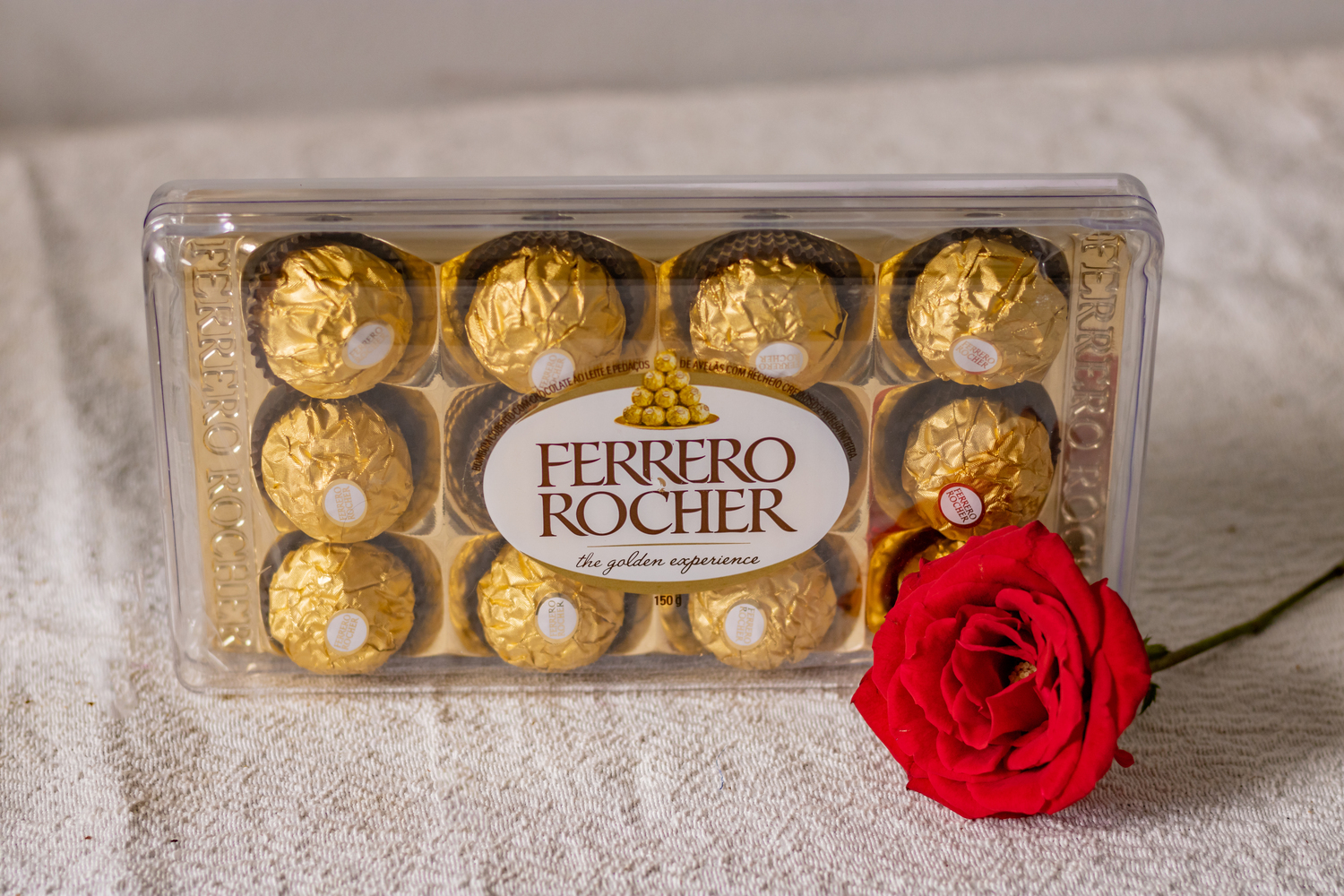 Uma rosa com caixa de chocolates Ferrero